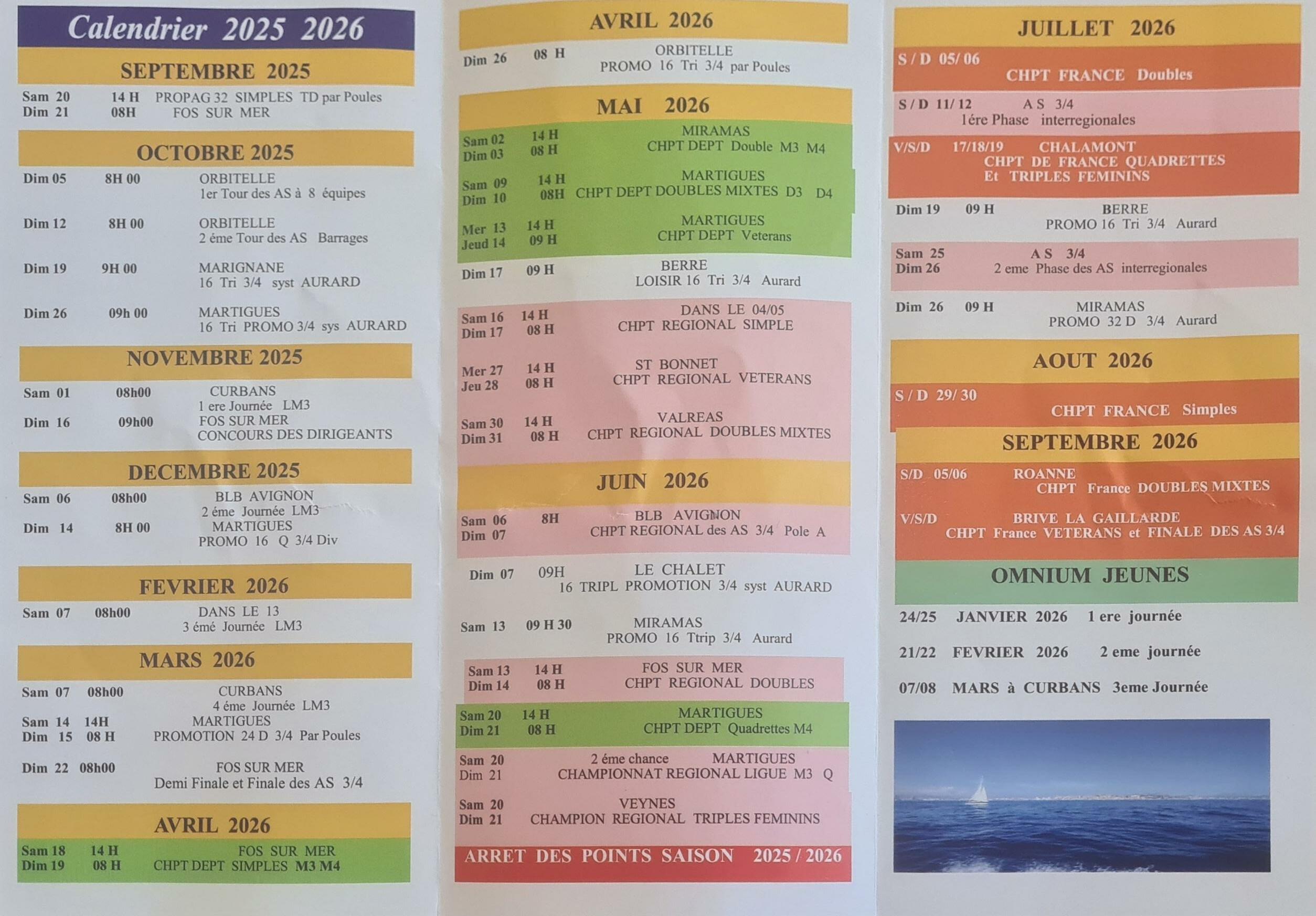 Vous trouverez ci-joint les calendriers de nos départements voisins.